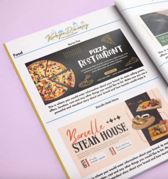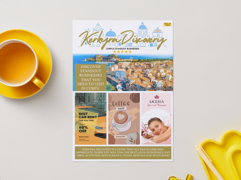 If you would like to advertise your business inside of Kerkyra Discovery, please head to the 'advertise with us' section or click the tab below. If you have no artwork for the magazine, we can help. Just ask!